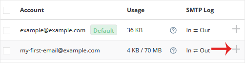 3. Na lista Conta de e-mail, o endereço de e-mail aparece com um ícone de mais no lado direito .